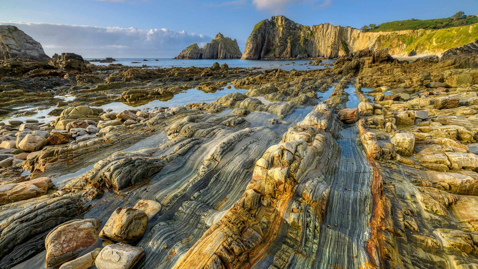 Quartzite formation, Playa del Silencio, Asturias, 西班牙 (© Jean-Philippe Delobelle/Minden Pictures)